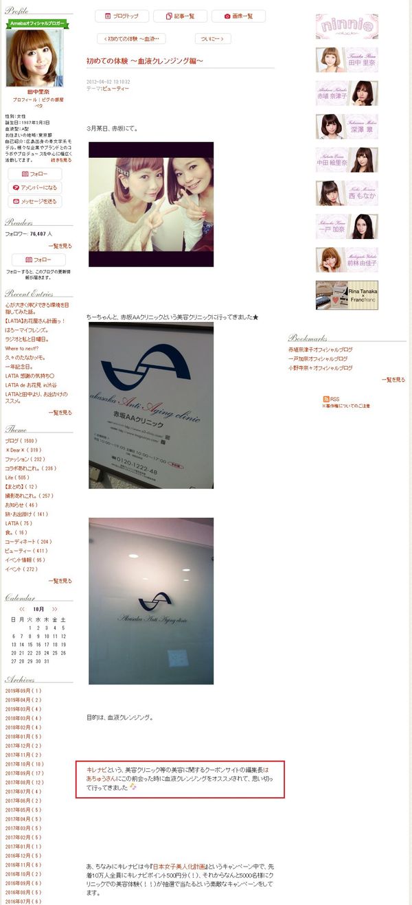 はあちゅうは、自分のブログで何度も血液クレンジングを紹介してキレナビクーポンも勧めたわ。