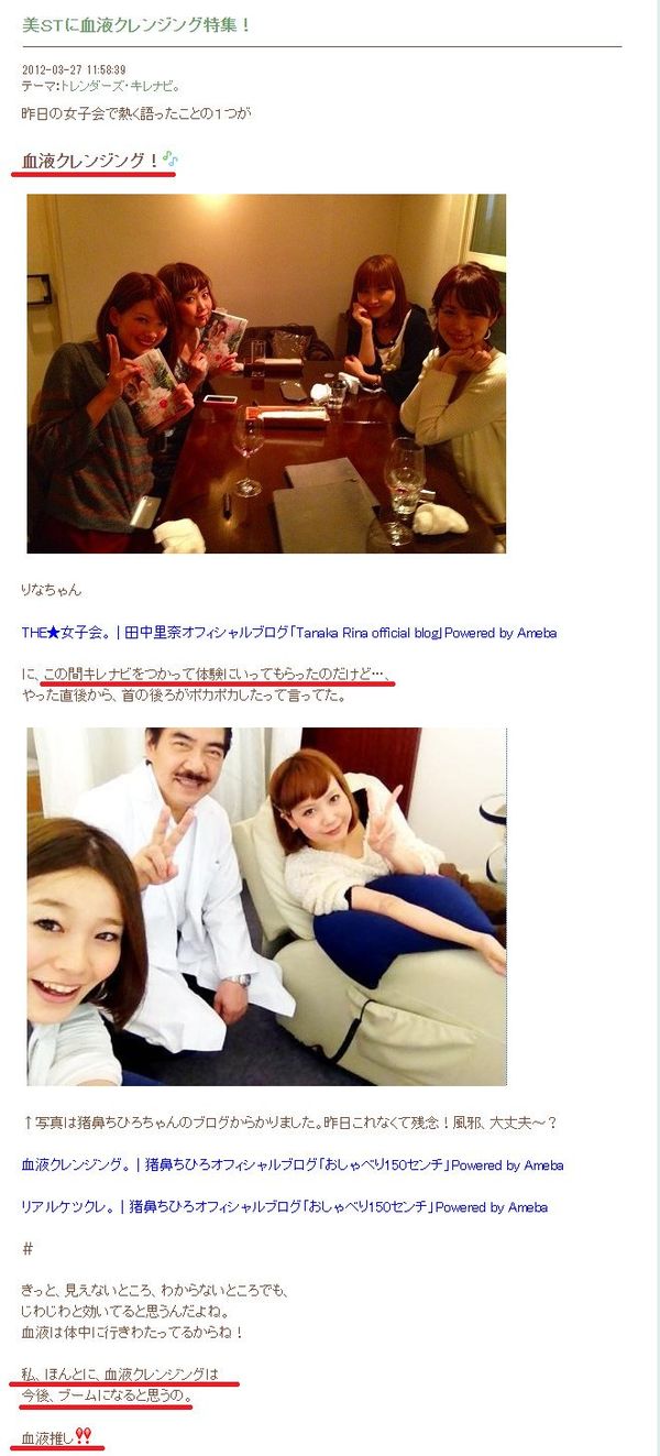 血液クレンジングの件は、すでに記事になった東洋経済さん、今日記事が出たバズフィードさん、あと一社、週刊誌から取材依頼を貰ったので、もう一記事出ます。7年前のブログが今回発端になりましたが、ブログとgmailのログのおかげで全ての取材に、日付や具体名入りで詳しくコメント出来たと思います。